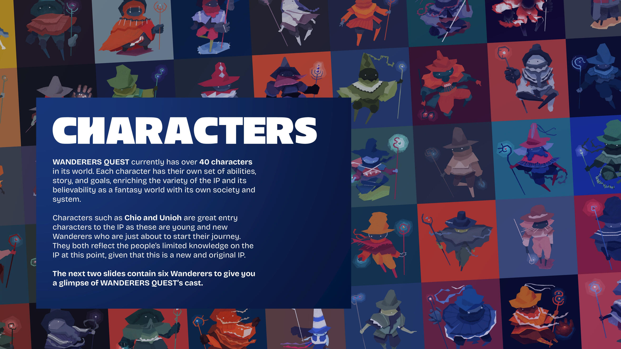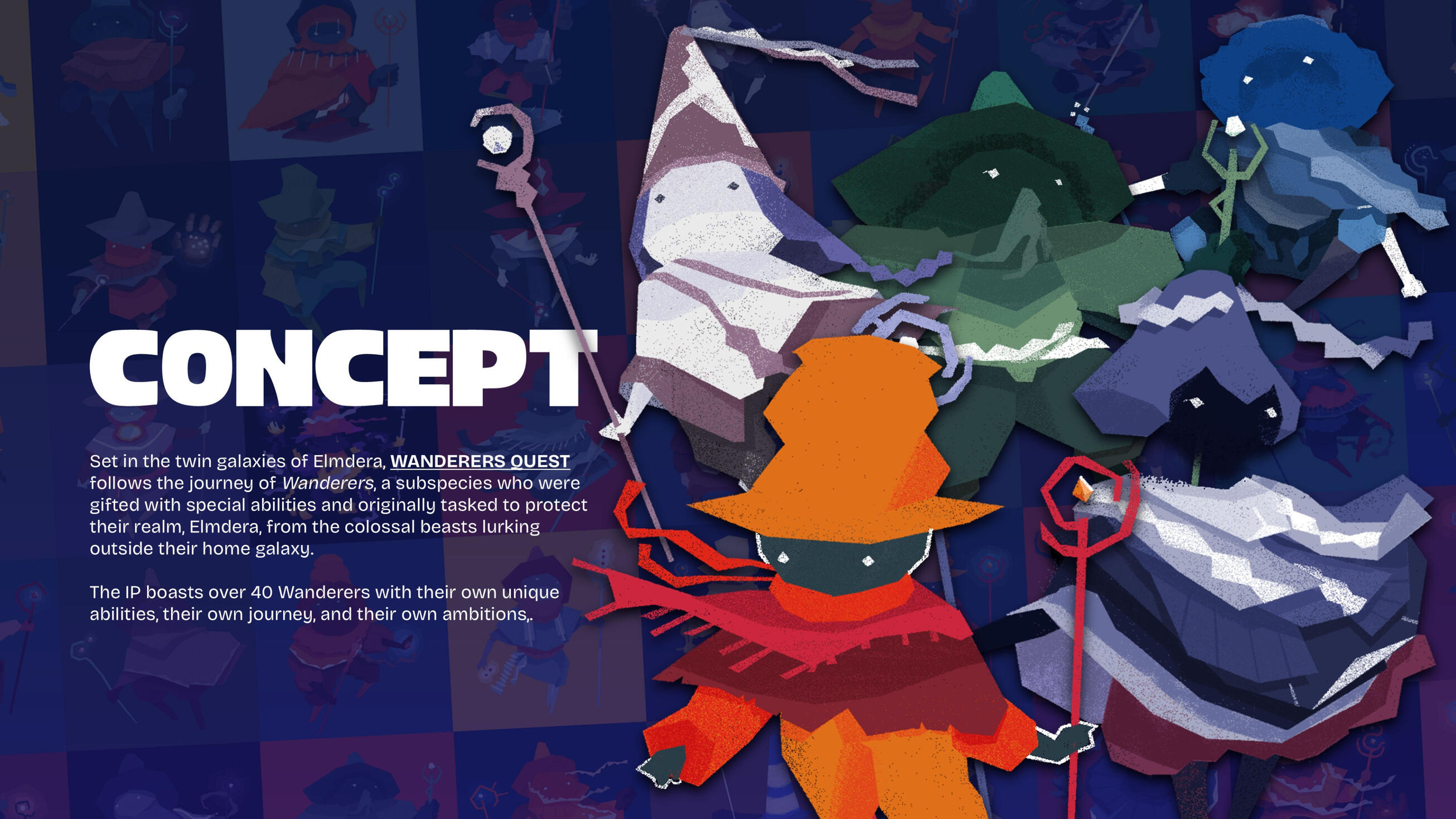 WANDERERS QUEST is a fantasy IP that follows the journey of Wanderers, a subspecies who were gifted with otherworldly abilities and originally entrusted with the purpose to protect their realm, Elmdera, from the colossal beasts that lurk outside their home galaxy.The IP boasts over 40 Wanderers with their own unique abilities, their own journey, and their own ambitions, sometimes conflicting with their original given purpose.